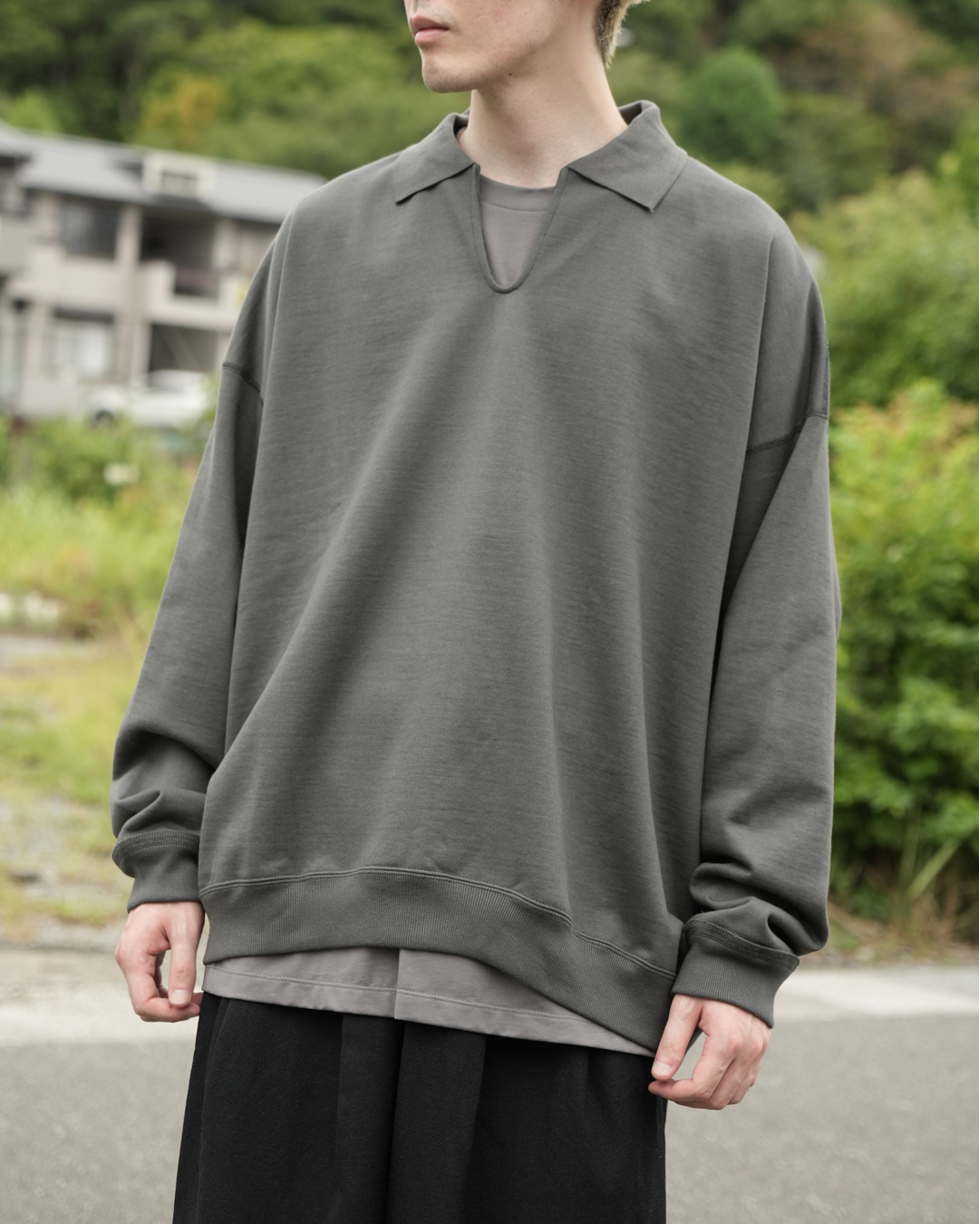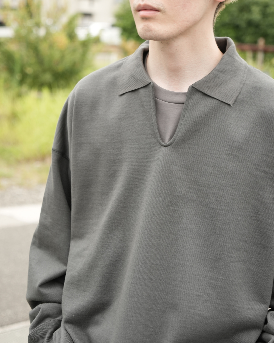 卓越した生地と計算されたシルエットはそのままに、新たな魅力が加えられたこちらのスウェット。何と言っても最大の特徴は、首元に配された「控えめなスキッパーデザインとポロ襟」にあります 。
